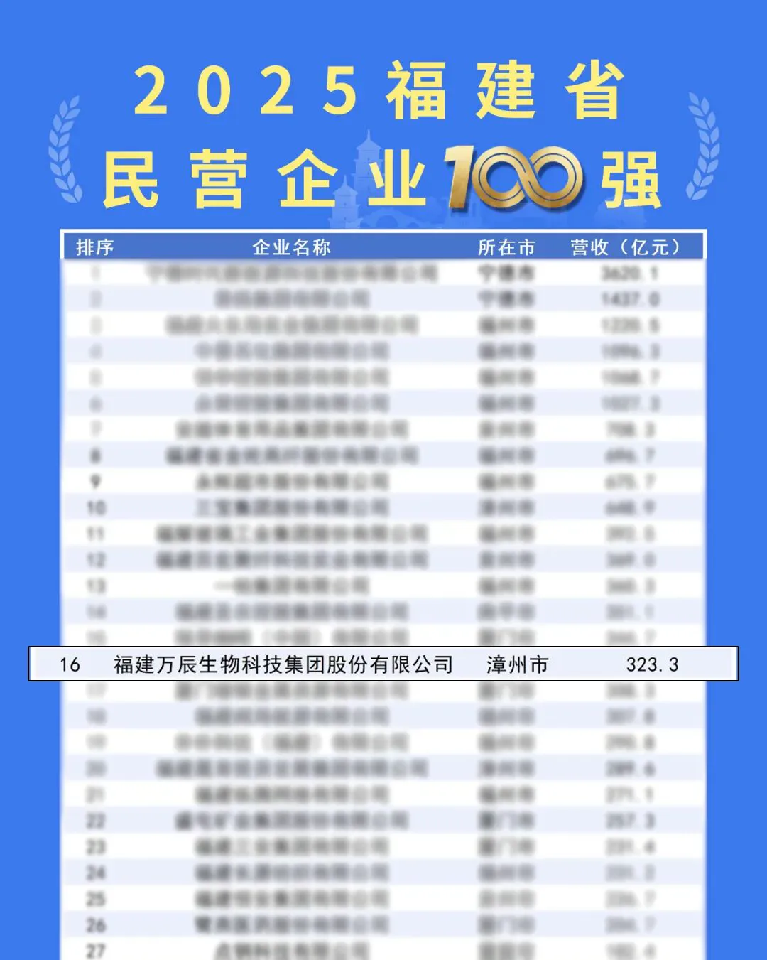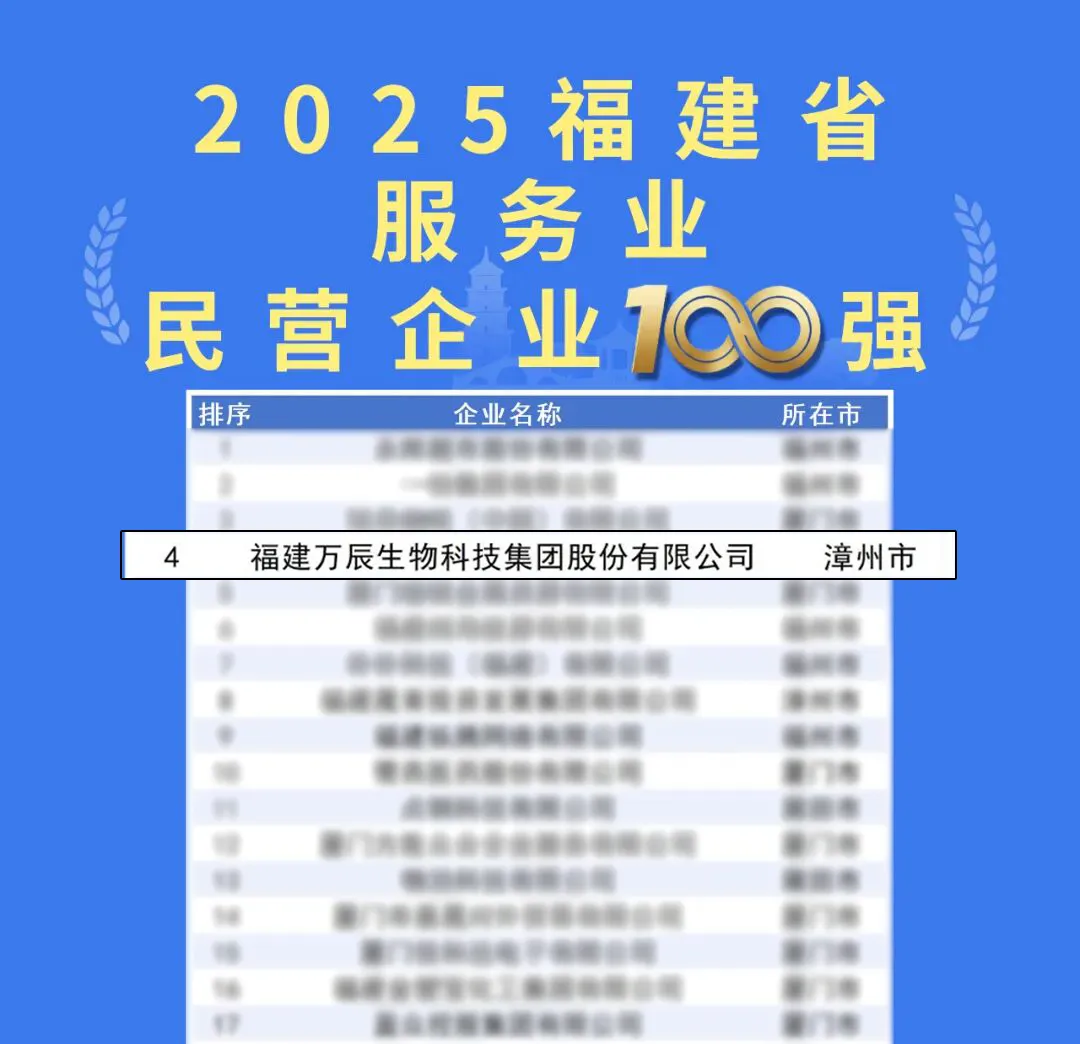 9月28日,2025福建省民營企業(yè)100強(qiáng)發(fā)布暨寧德市產(chǎn)業(yè)招商推介會(huì)在寧德舉行,會(huì)上福建省工商聯(lián)發(fā)布了2025福建省民營企業(yè)100強(qiáng)、制造業(yè)民營企業(yè)100強(qiáng)、服務(wù)業(yè)民營企業(yè)100強(qiáng)、創(chuàng)新型民營企業(yè)100強(qiáng)4個(gè)榜單。萬辰集團(tuán)登榜,位列2025福建民營企業(yè)100強(qiáng)第16位、2025福建服務(wù)業(yè)民營企業(yè)100強(qiáng)第4位。